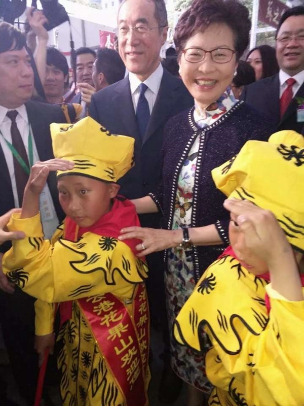 (圖為香港特首林鄭月娥與葛繼才校長弟子合影)