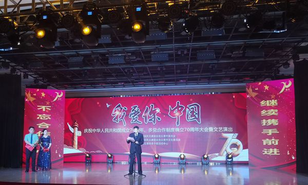 9月20日,“我愛你,中國!”—民建市委慶祝新中國成立70周年、多黨合作制度確立70周年大會暨文藝演出,在市老干部活動中心熱烈舉行。中共市委統戰部副部長于廣舉,市紀委監委派駐第四紀檢監察組組長楊永龍,市各民主黨派市委、工商聯和市老干部活動中心等單位領導應邀出席活動。民建市委主委朱振亞、副主委張克勤,市委委員,部分老領導、老同志和基層組織代表200余人參加了活動。