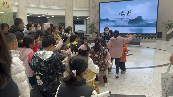 本次活動以中國古代儒家要求學(xué)生掌握的六種基本才能:禮、樂、射、御、書、數(shù),即“君子六藝”為主題。活動現(xiàn)場,會員們帶領(lǐng)孩子們參觀了《汗青遺墨——東海尹灣漢墓簡牘》展廳,開展了互行拜禮、書寫名謁,聽音識樂名、投壺、駕駛推車過障礙等活動,沉浸式體驗(yàn)古代文人的必修課程,在游戲中領(lǐng)略中國傳統(tǒng)文化的精妙,激發(fā)孩子們樂學(xué)、善思、明禮、篤行的人生觀和價值觀。活動還特別設(shè)置了親子互動環(huán)節(jié),讓家長參與其中,與孩子們一同探索樂趣,獲得了大家的一致好評。